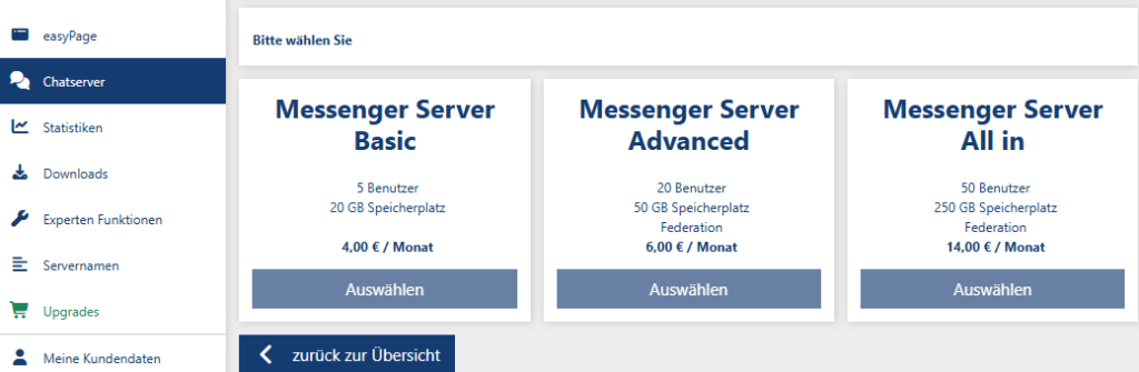 Cool sind auch die zusätzlich zum Webhosting buchbaren Messenger-Server, über die dann DSGVO-konform im Matrix-Netzwerk gechattet werden kann.